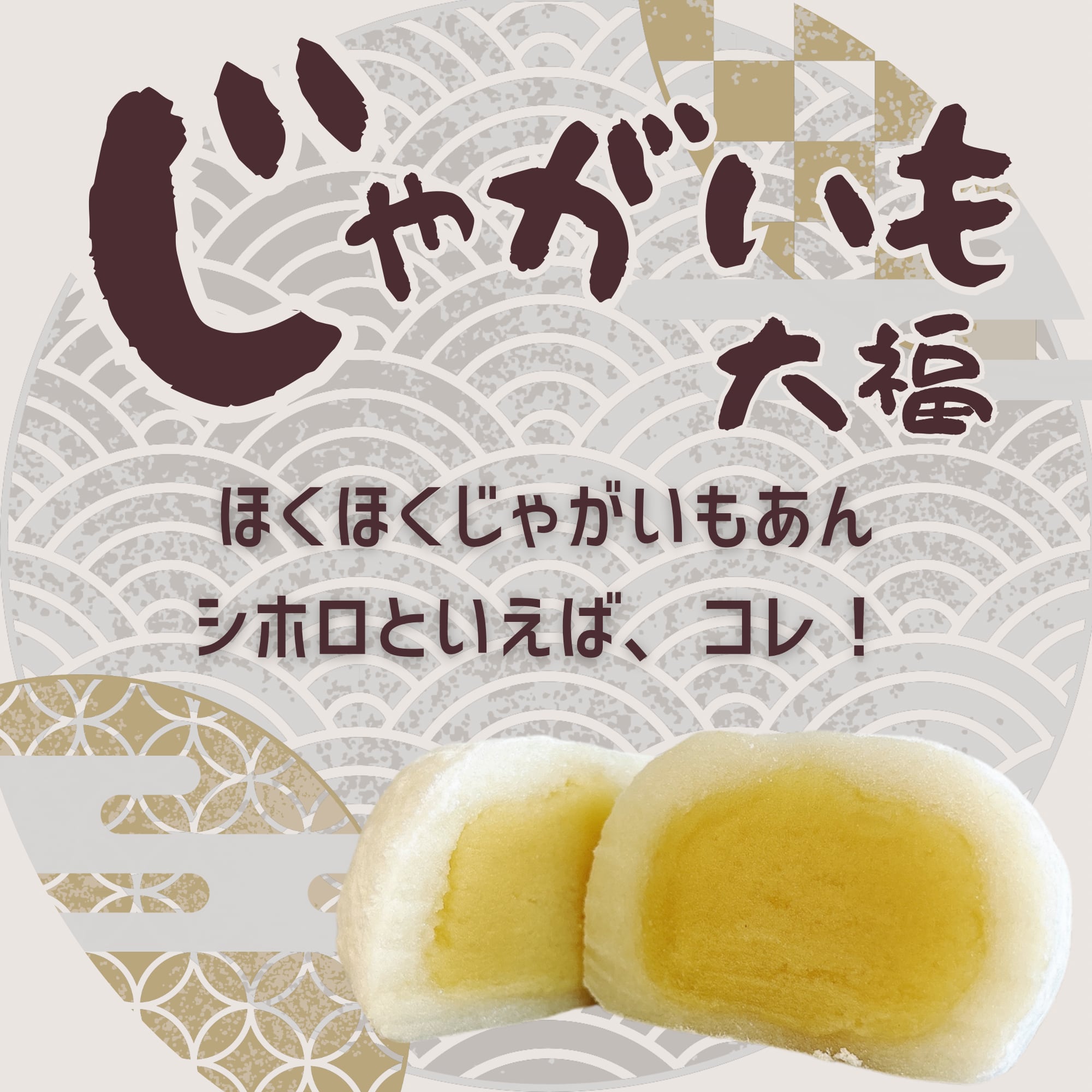 【原材料名】じゃがいも餡(砂糖、馬鈴薯、白いんげん豆、還元水飴、その他)(国内製造)、もち米(北海道産)、砂糖、食塩/トレハロース、グリシン、加工澱粉、乳化剤、酵素、香料、(一部に卵、乳成分、大豆を含む)