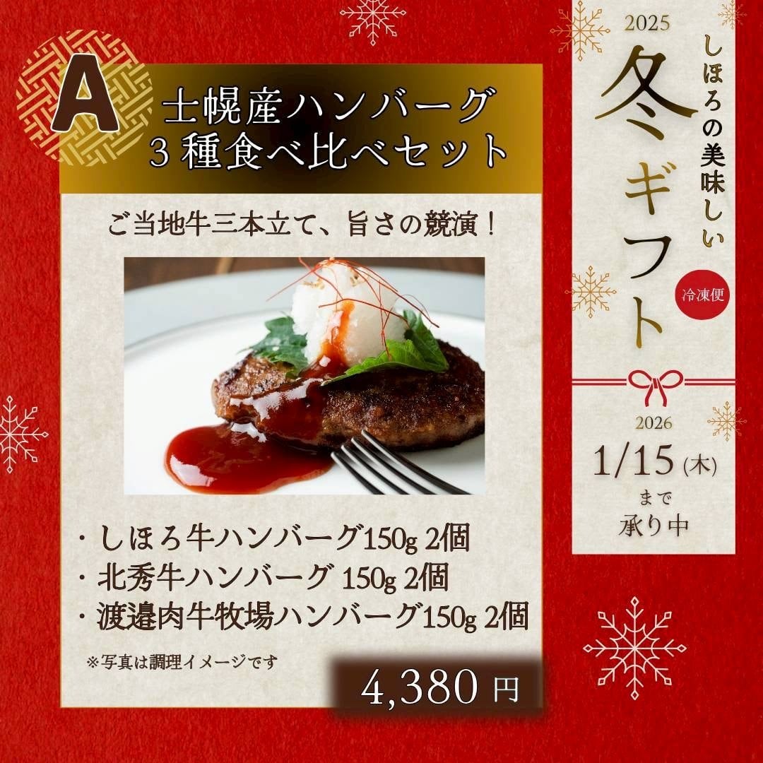 【冬ギフト】士幌産ハンバーグ 3種食べ比べセット